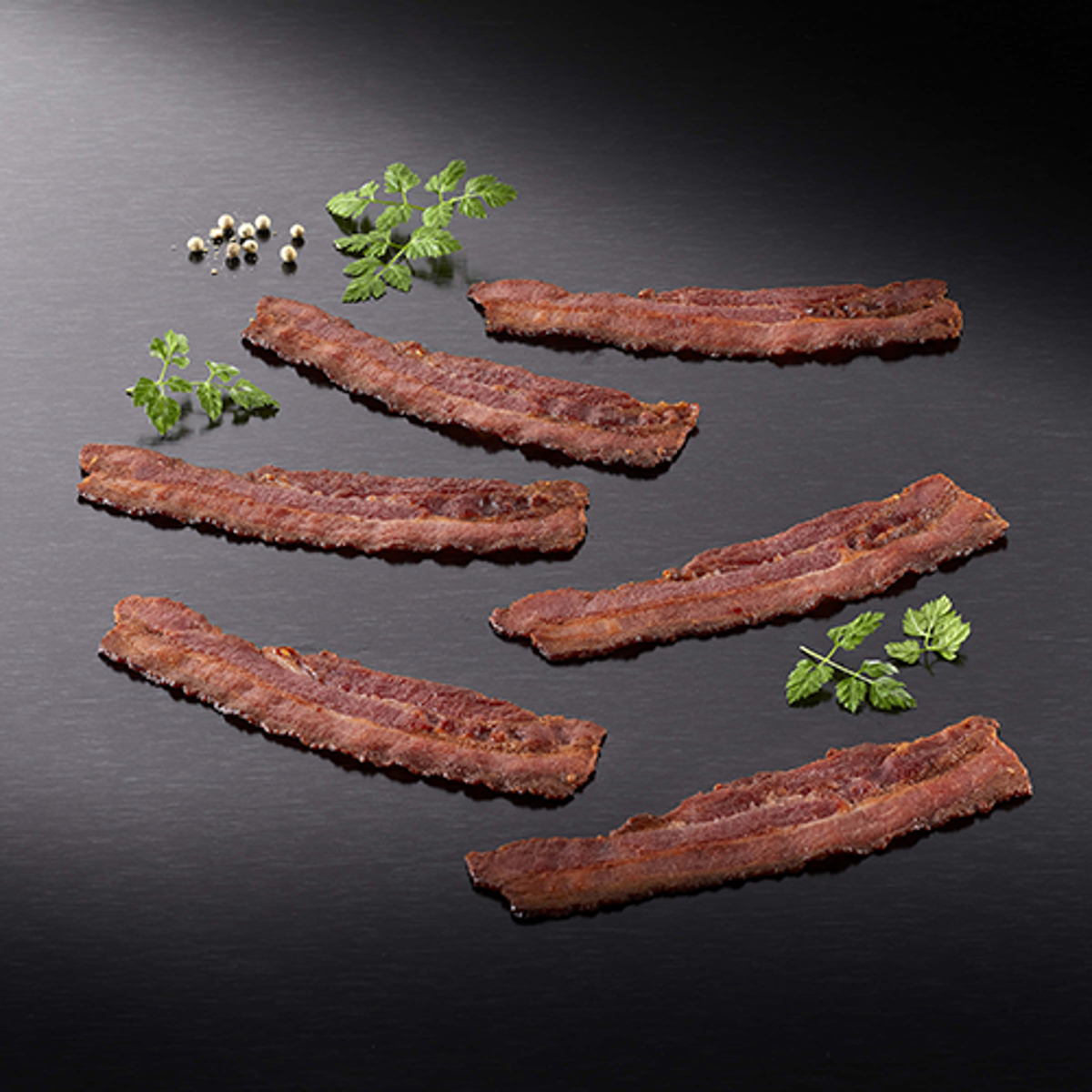 1000 gPoitrine précuite fumée au bois de hêtre. Facile à utiliser et rapide à cuire. Idéal pour les petits déjeuners et les buffets. Sous atmosphère contrôlée.