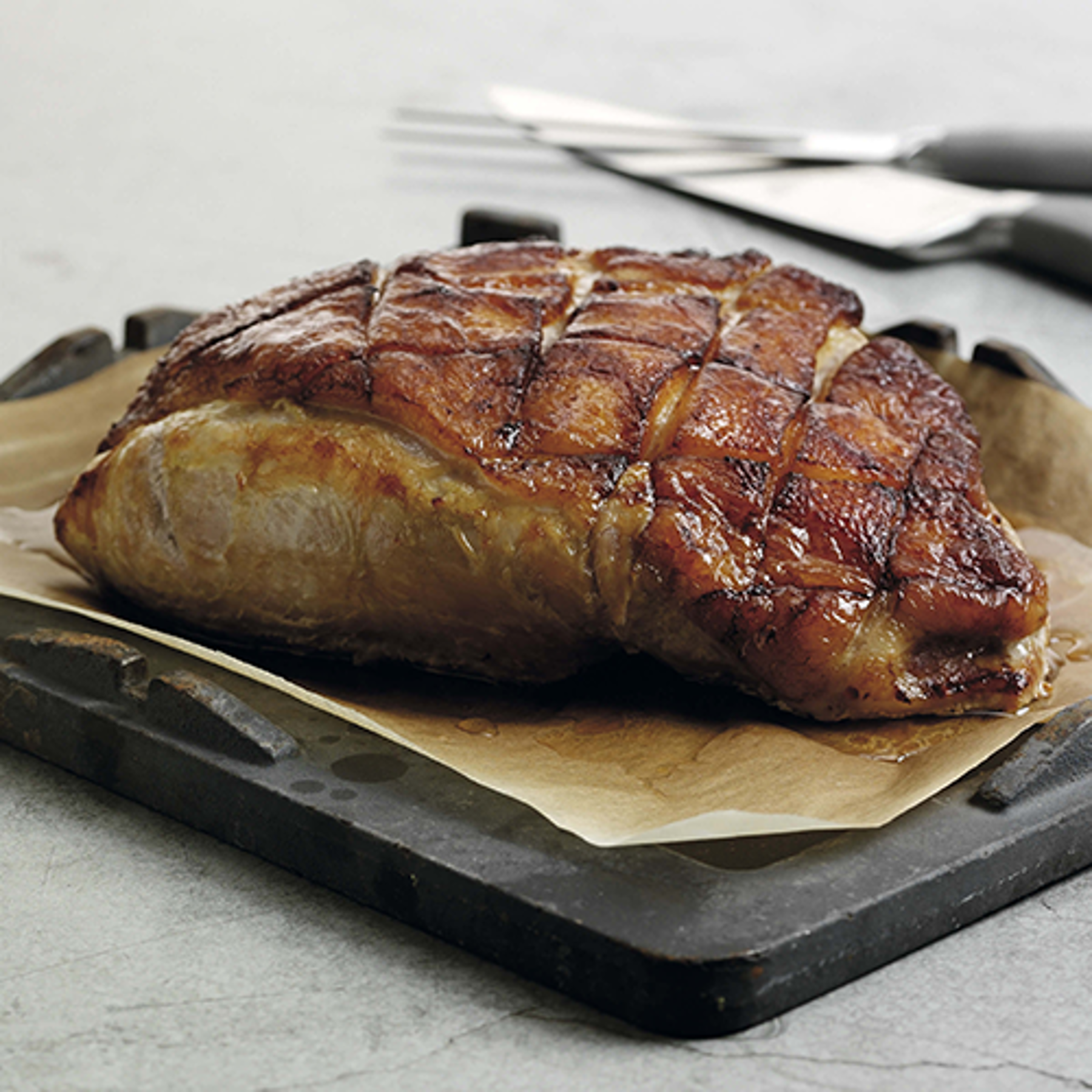 Mettre au four la noix de jambon décongelée pendant env. 80 min à 170°C. Après 45 min, la recouvrir de papier aluminium et terminer la cuisson pendant environ 30 min à 150°C.