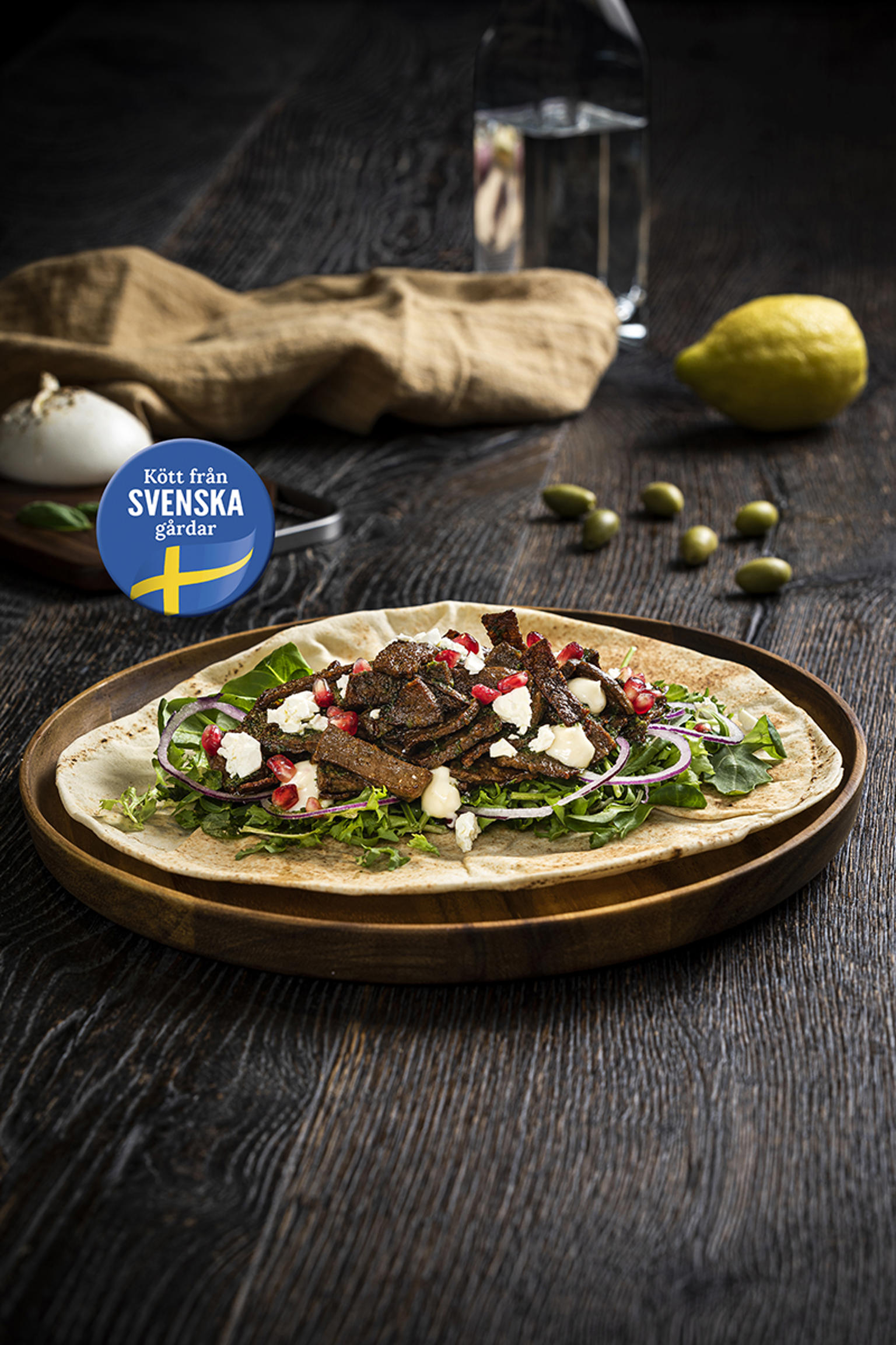 Nötkött (89%), vatten, salt, kryddor, stabiliseringsmedel (E 451), lök, örtkryddor. Kryddor: Cayennepeppar, chili, koriander, peppar, spiskummin, basilika, mejram, oregano, rosmarin, lök.