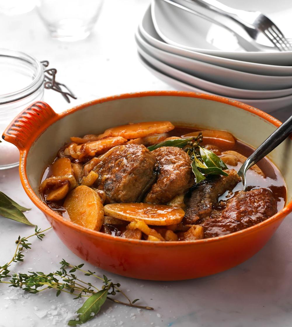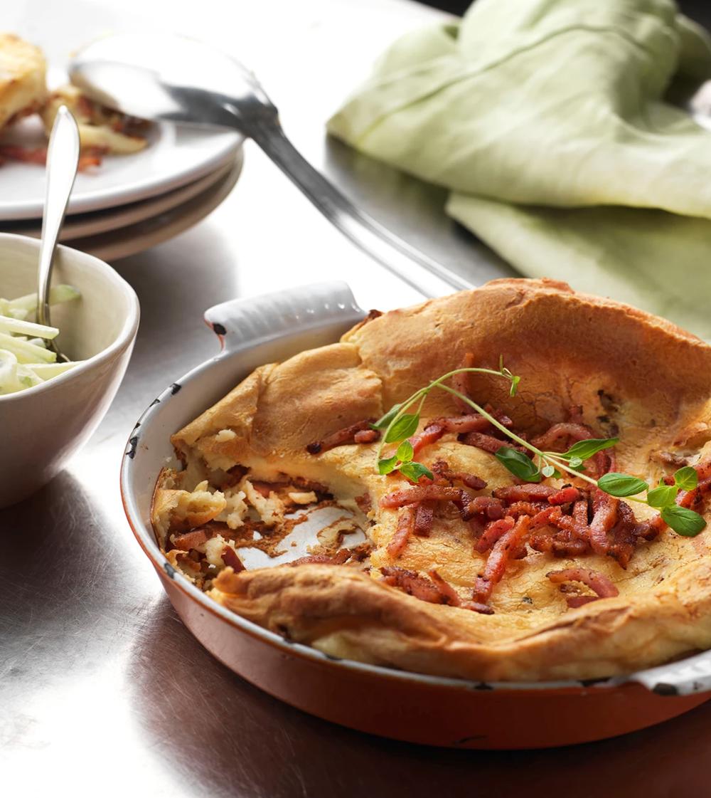 Skinkstek med potatissallad, pepparrot och äpplemos