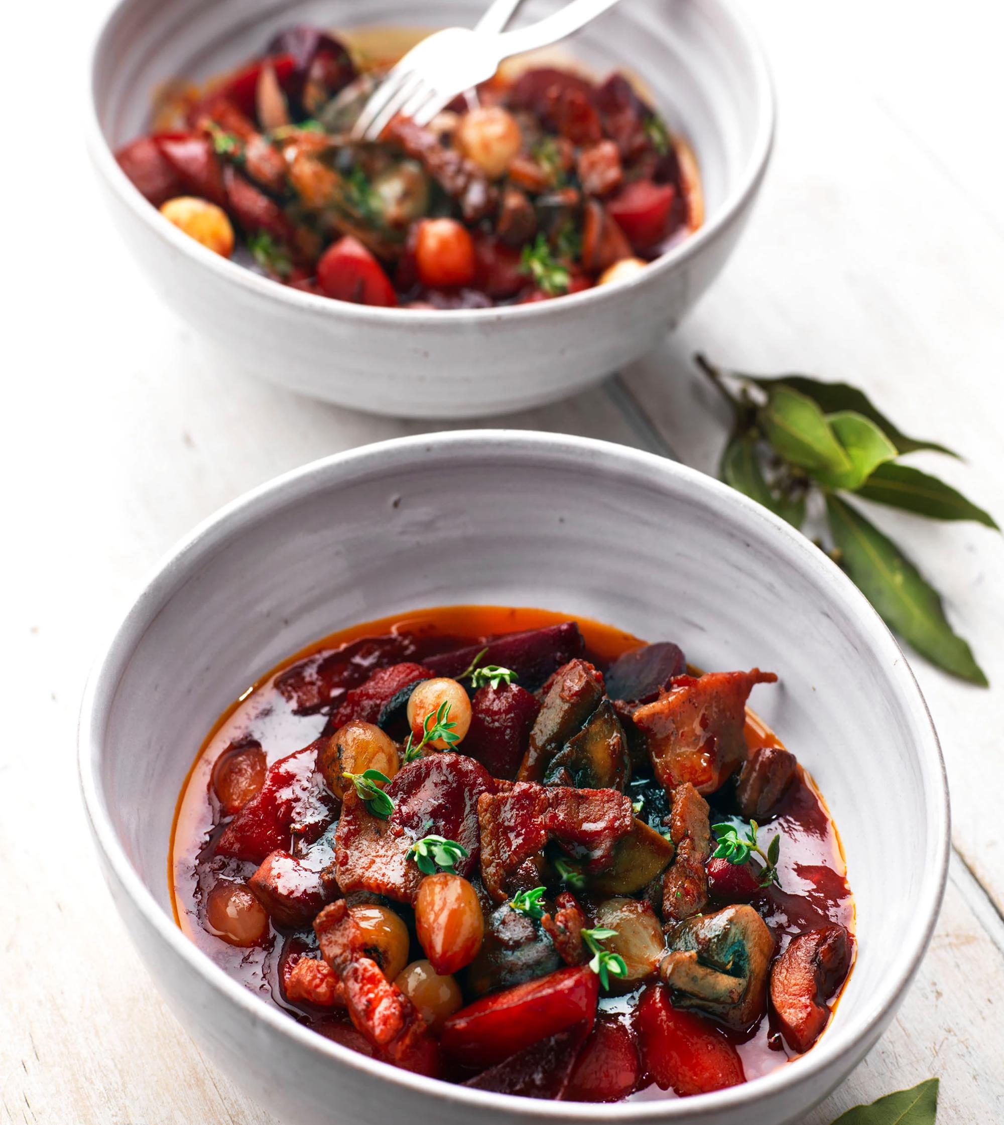 Femöring på pannbiff med stekt ägg och rödvinsky