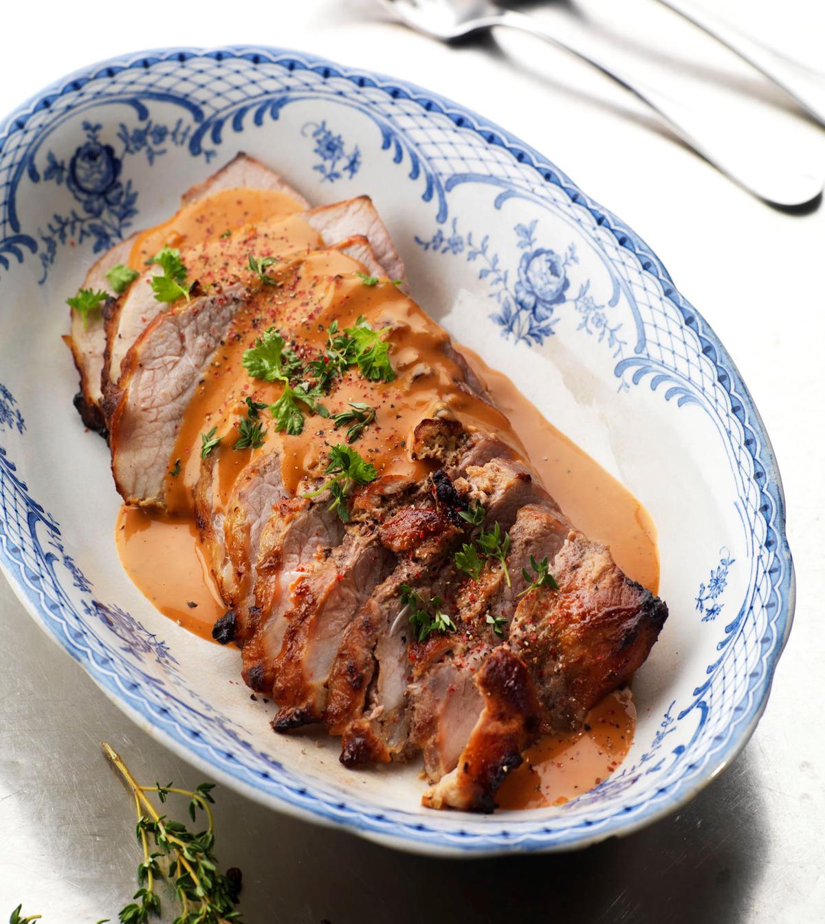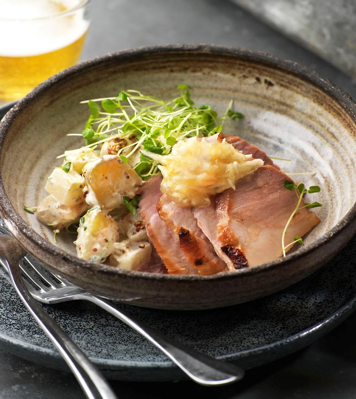 Skinkstek med äpplen och cidersås