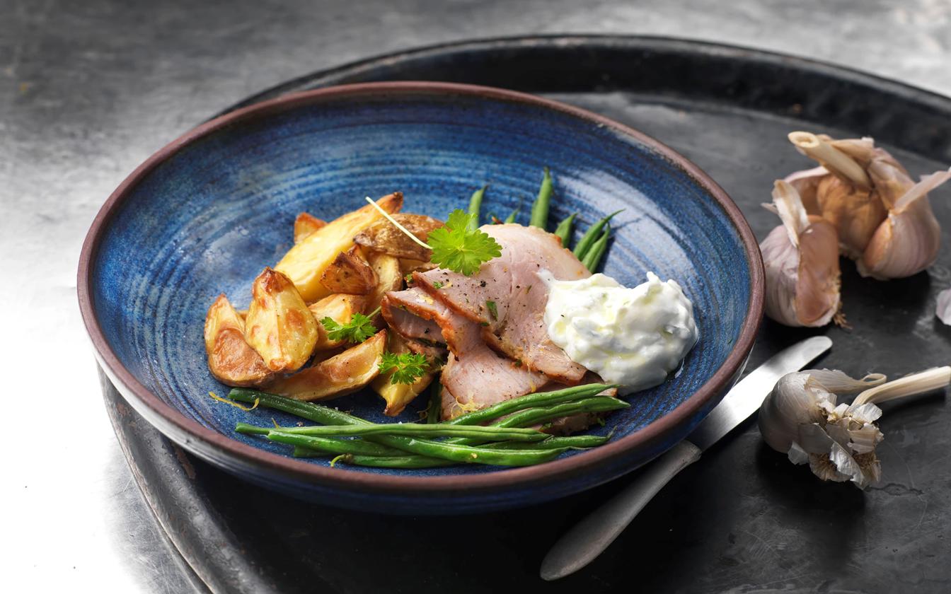 Servera steken tillsammans med tzatziki, klyftpotatis och grönsaker. Toppa med lite nyhackad oregano.