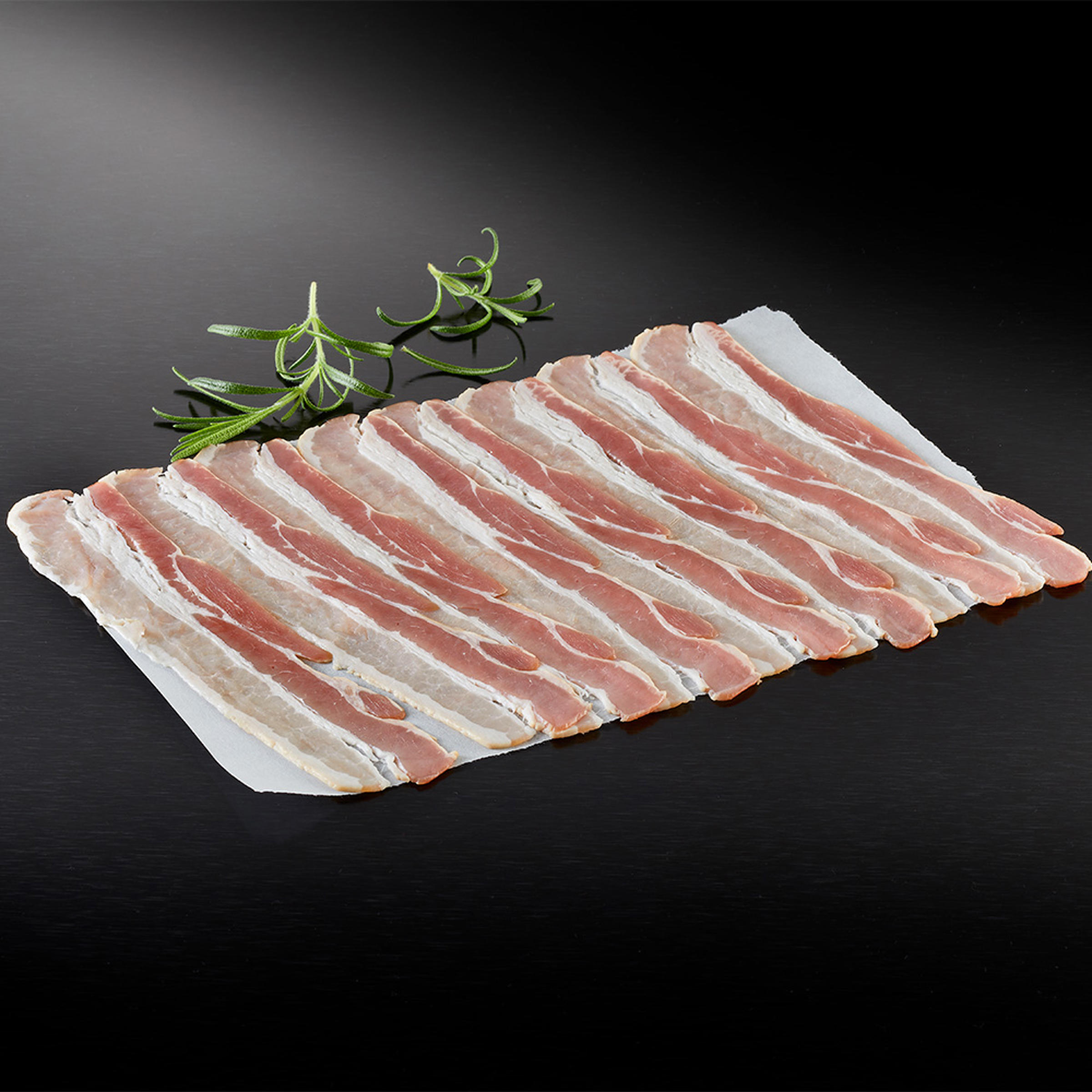 Bacon i skiver, sliced bacon – kær smag har mange navne! Her får du de helt traditionelle flotte, lange skiver af bacon, skåret af saltet og røget brystflæsk fra danske bacon-grise. Lige til at stege eller vikle om et kyllingebryst eller en grøn asparges. Du kan stege baconen på panden, men kender du vores ultranemme løsning, hvor skiverne allerede er lagt på et stykke bagepapir, så alt bare skal en tur i ovnen – og du får sprød og velsmagende bacon, uden fedtede pander!
